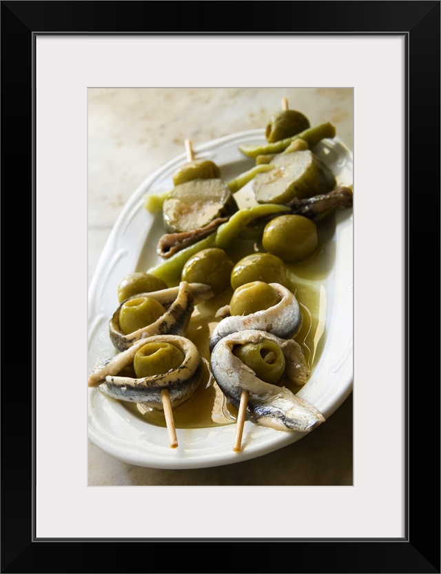 <p>Spain, Arag..n, Saragossa, Bodegas Almau Tapas Bar, tapas with stuffed olives and anchovies</p>