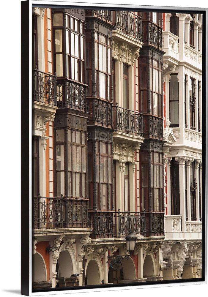 <p>Spain, Asturias Region, Asturias Province, Aviles, Old Town buildings and cafes</p>