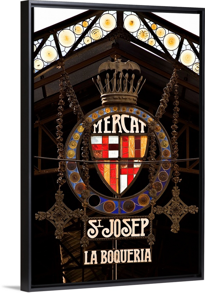 <p>Spain, Barcelona, Boqueria Market, Mercat de Sant Josep, Entrance Sign.</p>