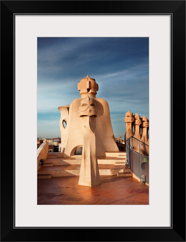 <p>Spain, Barcelona, Casa Mila after architect Antoni Gaudi on Passeig de Gracia Avenue, Rooftop.</p>