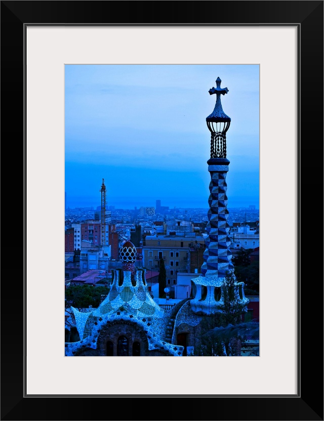 <p>Spain, Barcelona, Park Guell, Roof detail of Gate houses at entrance, Blue tone.</p>