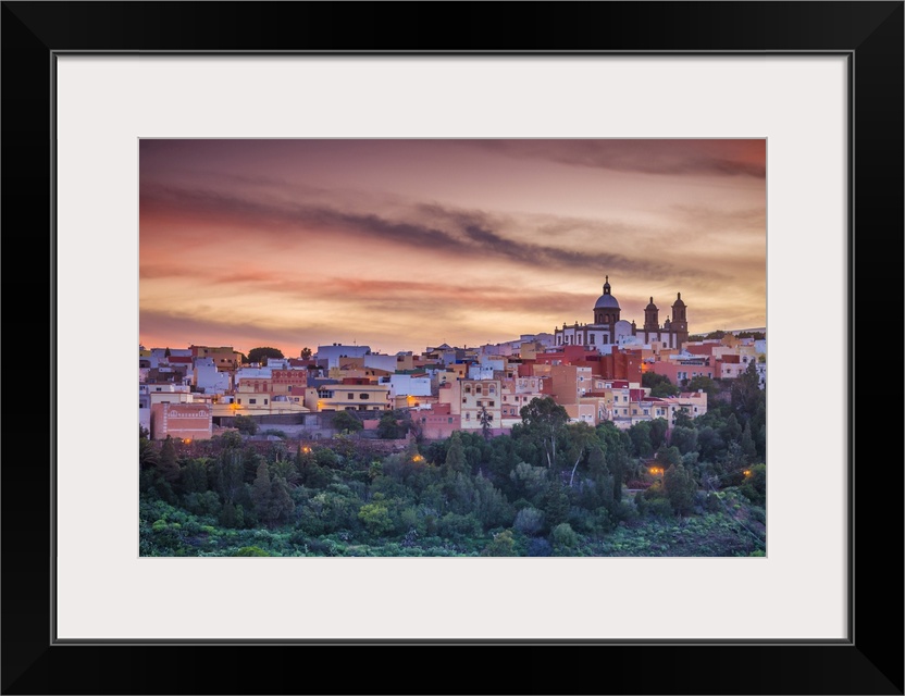 <p>Spain, Canary Islands, Gran Canaria Island, Aguimes, town view with Iglesia de San Sebastian church, dusk.</p>