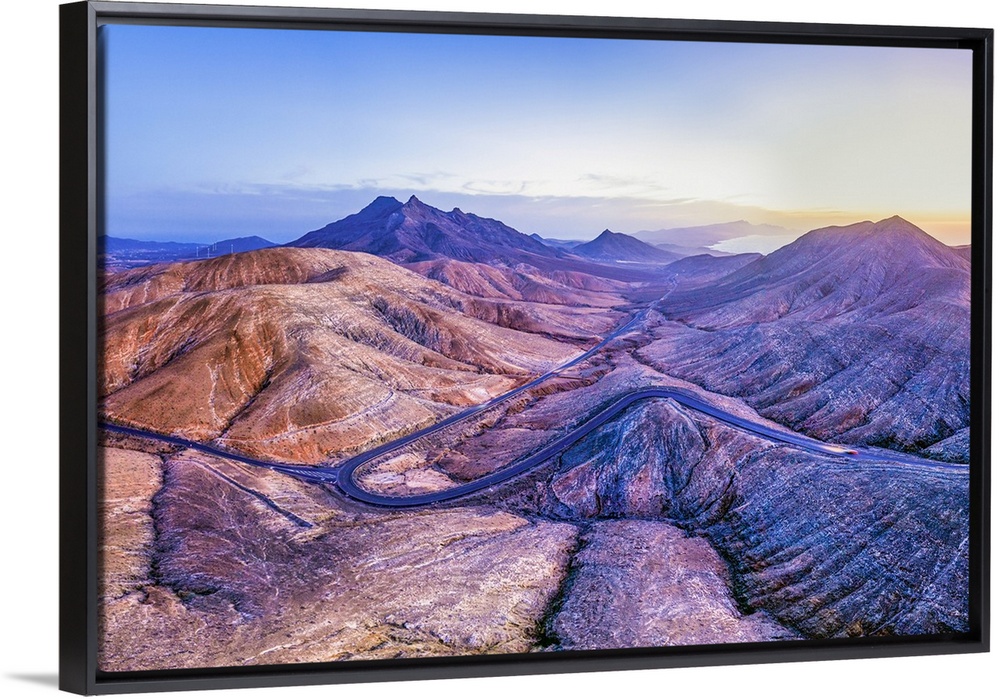 <p>Spain, Canary Islands, Fuerteventura, mountain road crossing the volcanic landscape near Sicasumbre astronomical viewpoint</p>