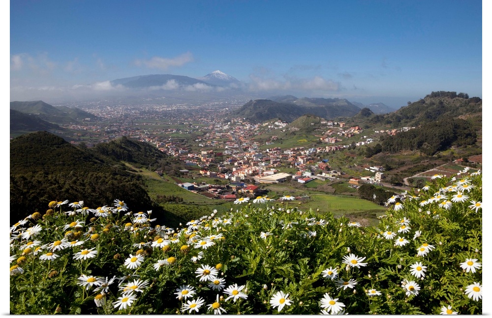 <p>Spain, Canary Islands, Tenerife, Parque Rural de Anaga, View of San Cristobal de La Laguna and el Teide from Mirador de las Mercedes</p>
