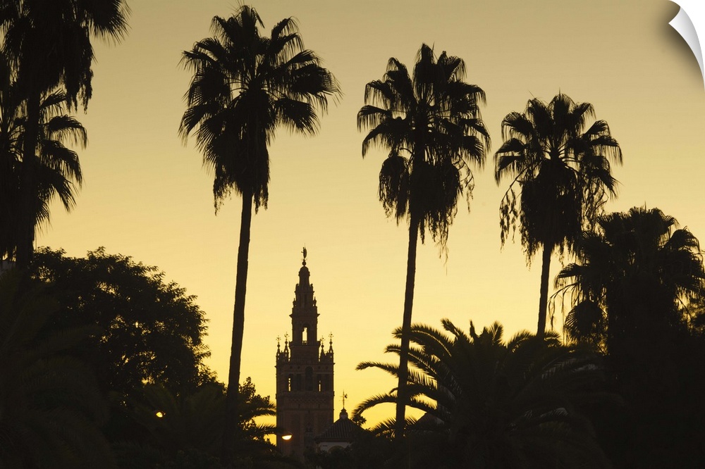 <p>Spain, Andalucia Region, Seville Province, Seville, Giralda tower from the Rio Guadalquivir river, dawn</p>