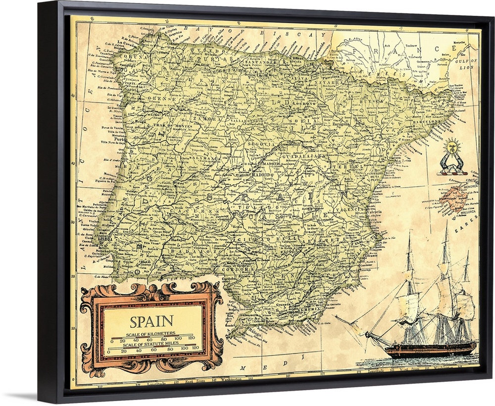 Executive Office Decor Drawing Maps Antique Maps Maps by Country Spain Vision Studio Vintage Art