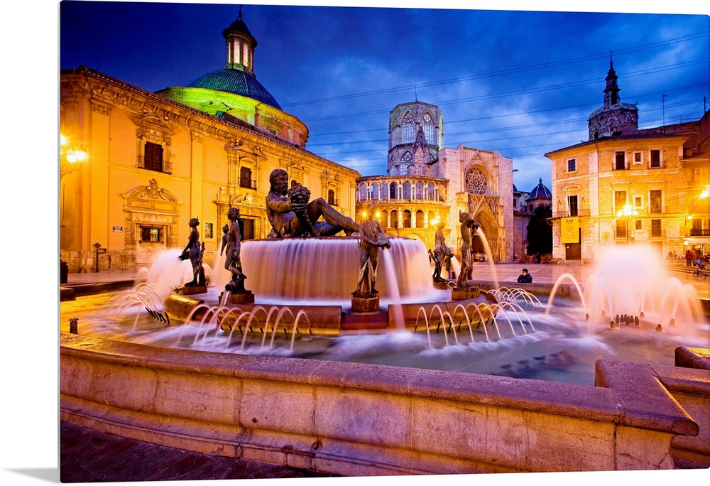 <p>Spain, Comunidad Valenciana, Valencia, Plaza de la Virgen, Turia fountain and the Cathedral</p>