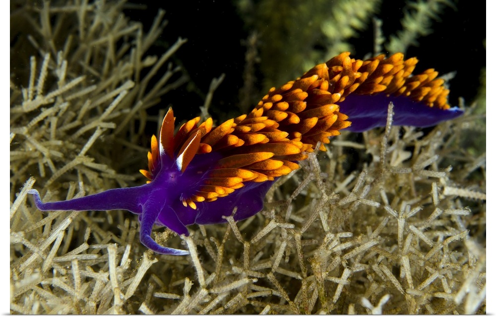 <p>Spanish shawl (Flabellina iodinea) on top of sea algae, Sea of Cortez, Baja California, Mexico.</p>