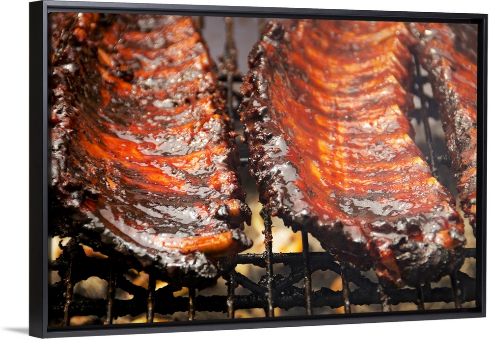 <p>USA, New York, New York City, Spareribs on barbeque</p>