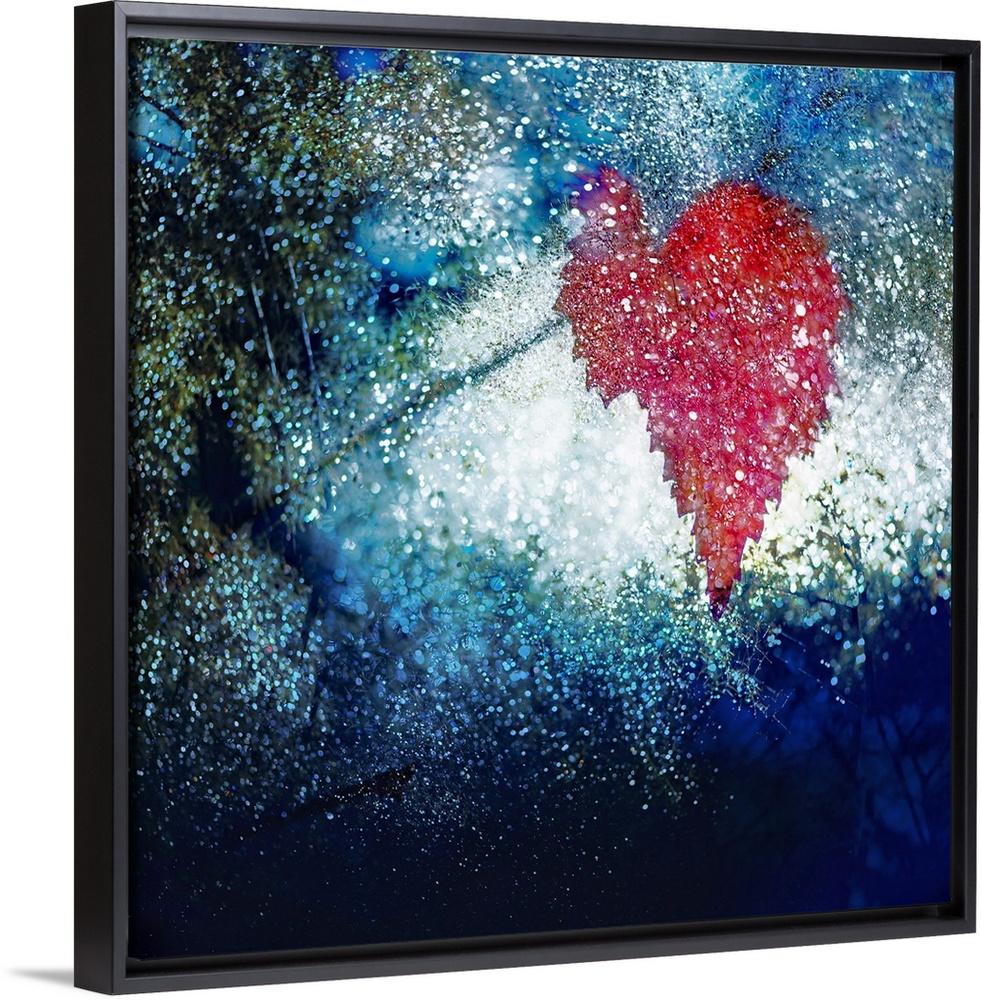 <p>Two separate images made a short distance from each other, combined in post processing. The red leaf was a lone leaf left on a tree in a park. The blue and white sparkles are an out of focus image of a bush, wet after rain, all the water drops on the many feathery leaves creating round sparkles. Intended to show the absolute gorgeous beauty of Autumn. Ursula Abresch Fall Collection.</p>