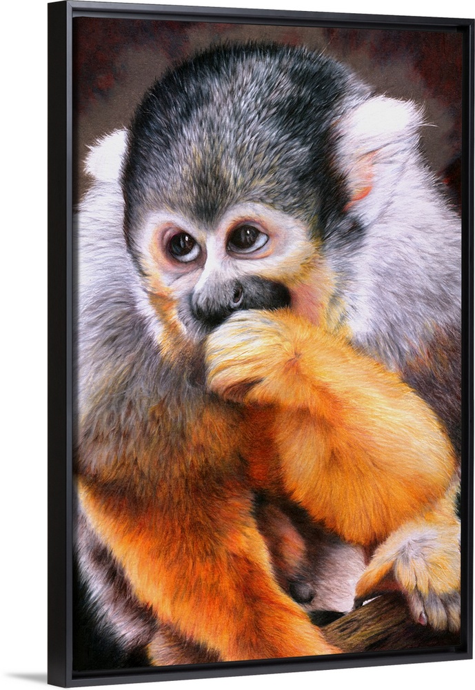 <p>Originally drawn with coloured pencils, a portrait of a cheeky little squirrel monkey.</p>