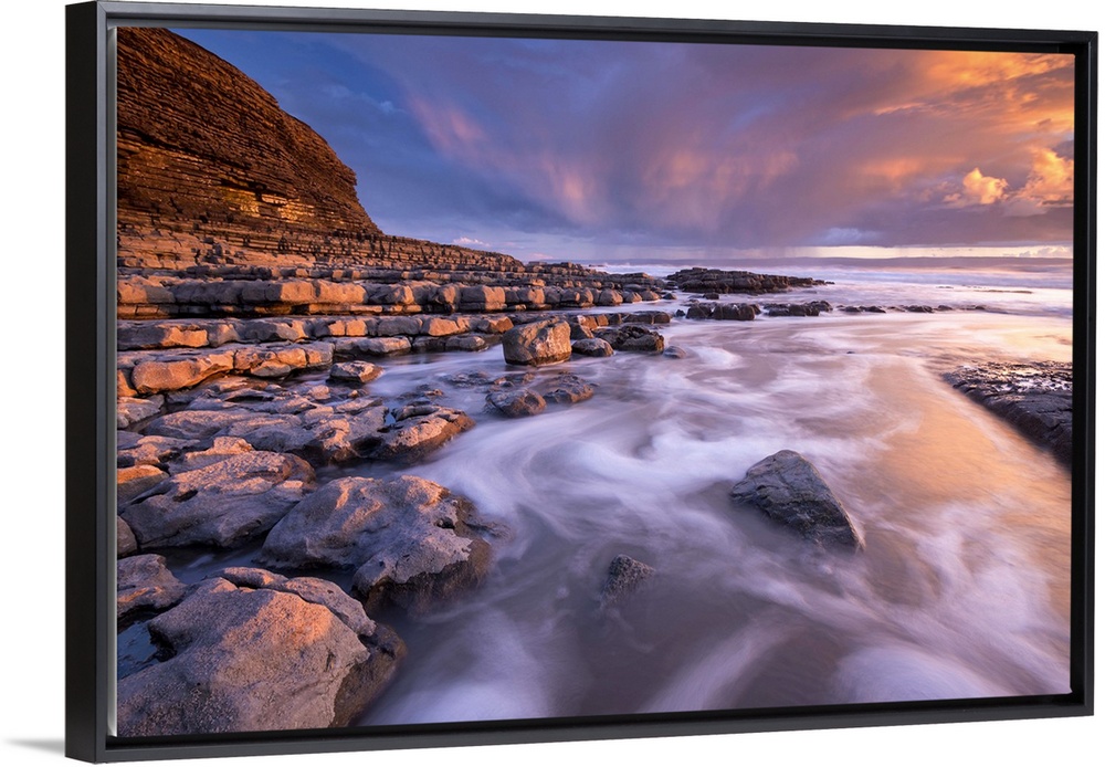 <p>Spectacular sunset over Nash Point on the Glamorgan Heritage Coast, South Wales, UK. Winter (February) 2016.</p>