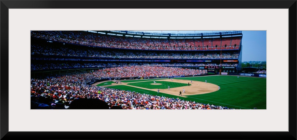 <p>Spectators in a baseball stadium, Shea Stadium, Flushing, Queens, New York City, New York State, USA</p>