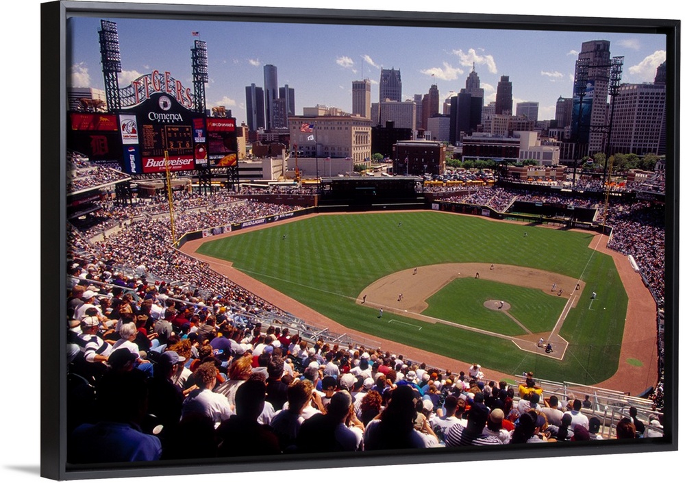 <p>Spectators watching a baseball match in a stadium, Comerica Park, Detroit, Michigan, USA</p>