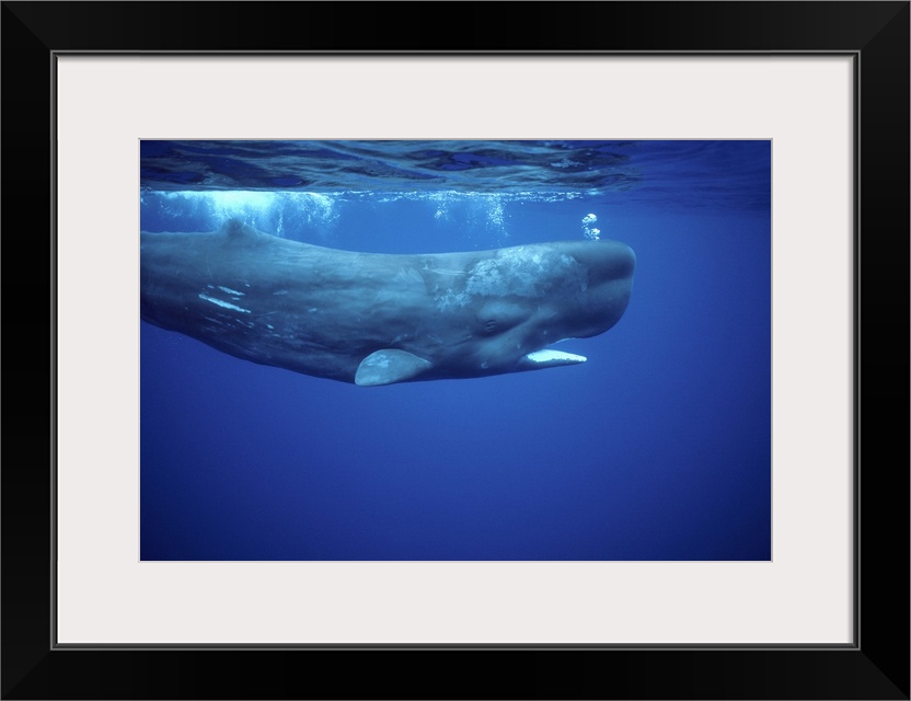 <p>Sperm whale (Physeter macrocephalus) photographed off the Azores Islands (Portugal), Atlantic Ocean.</p>