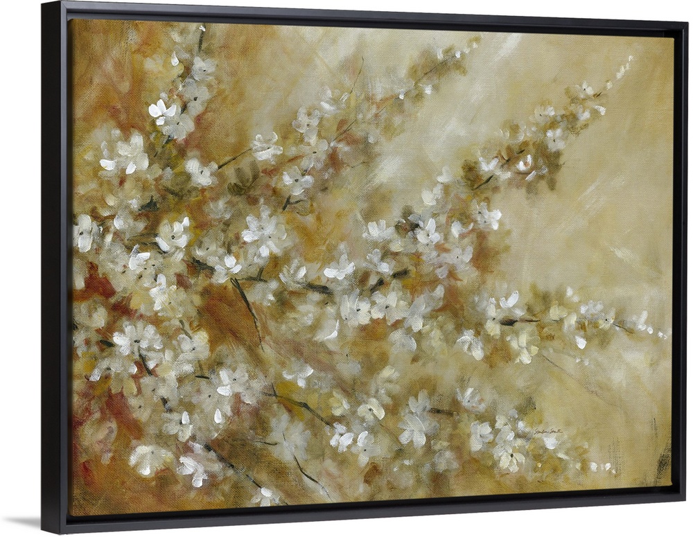<p>Contemporary painting of a tree with branches full of white blossoms.</p>