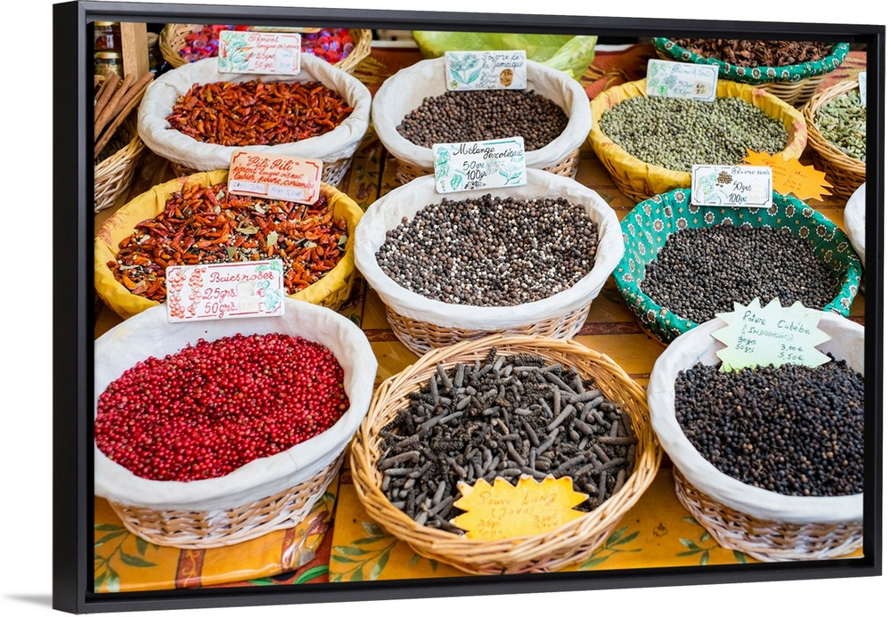 <p>Spices for sale at a French farmer's market on Place des Precheurs, Aix-en-Provence, Bouches-du-Rhone, Provence-Alpes-Cote d'Azur, France.</p>