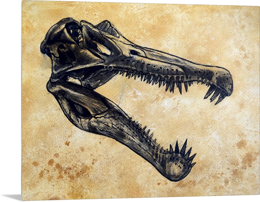 <p>Spinosaurus dinosaur skull on textured background.</p>