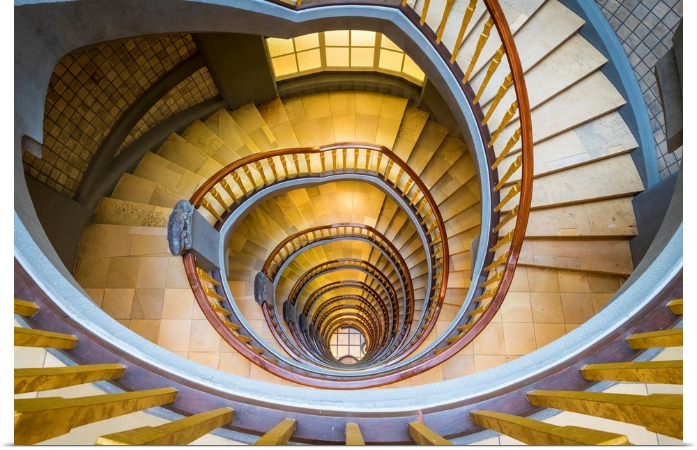 <p>Spiral staircase inside Ballinhaus (Meberghof) office building built in 1924, Kontorhausviertel, Hamburg Altstadt, Hamburg, Germany.</p>