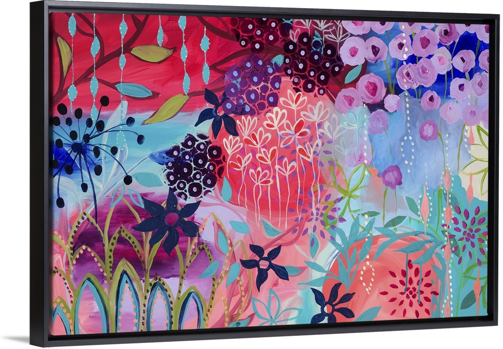 <p>Contemporary painting of a vibrant wildly colored flowers.</p>