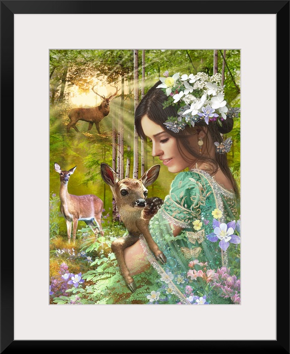 Art Fantasy Fairies People Wildlife Graphic Art Green Wall Art People Steve Read Wildlife Deer
