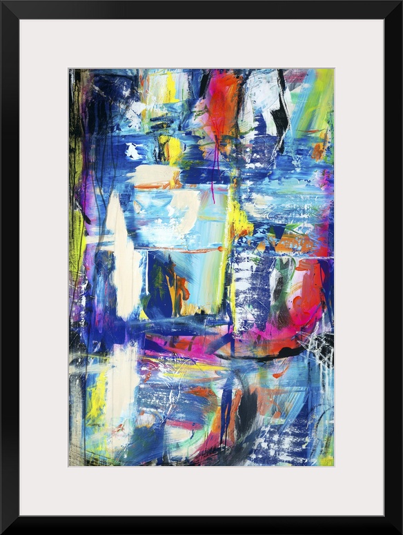 <p>Contemporary abstract painting using wild colors and graffiti-like strokes.</p>