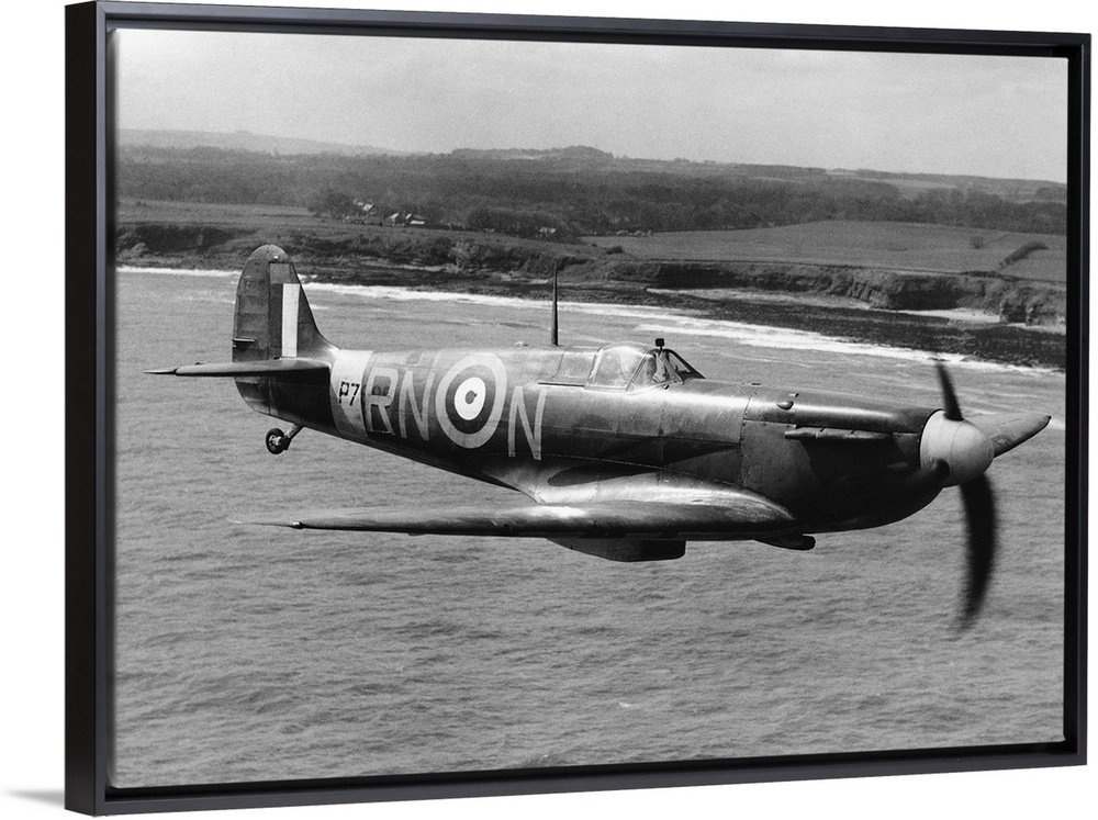 <p>A Spitfire in flight of the coast of Britain during World War II.</p>