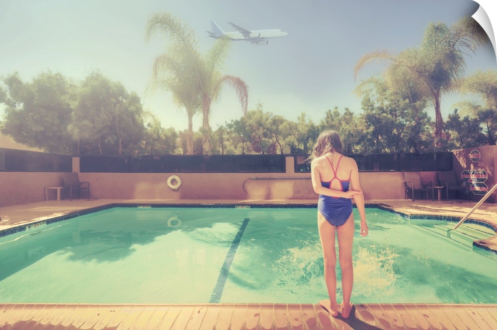 <p>A young girl looking at a pool in suburban Los Angeles.</p>