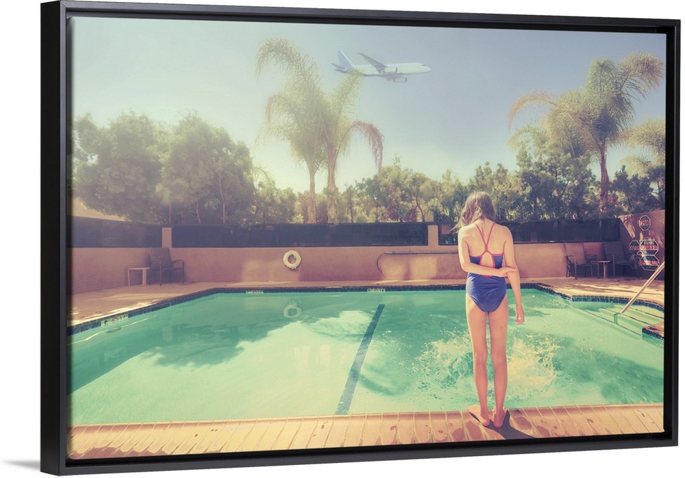 <p>A young girl looking at a pool in suburban Los Angeles.</p>