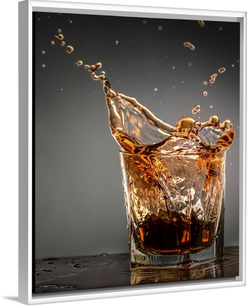 <p>Amber colored bourbon splashing in a short glass.</p>