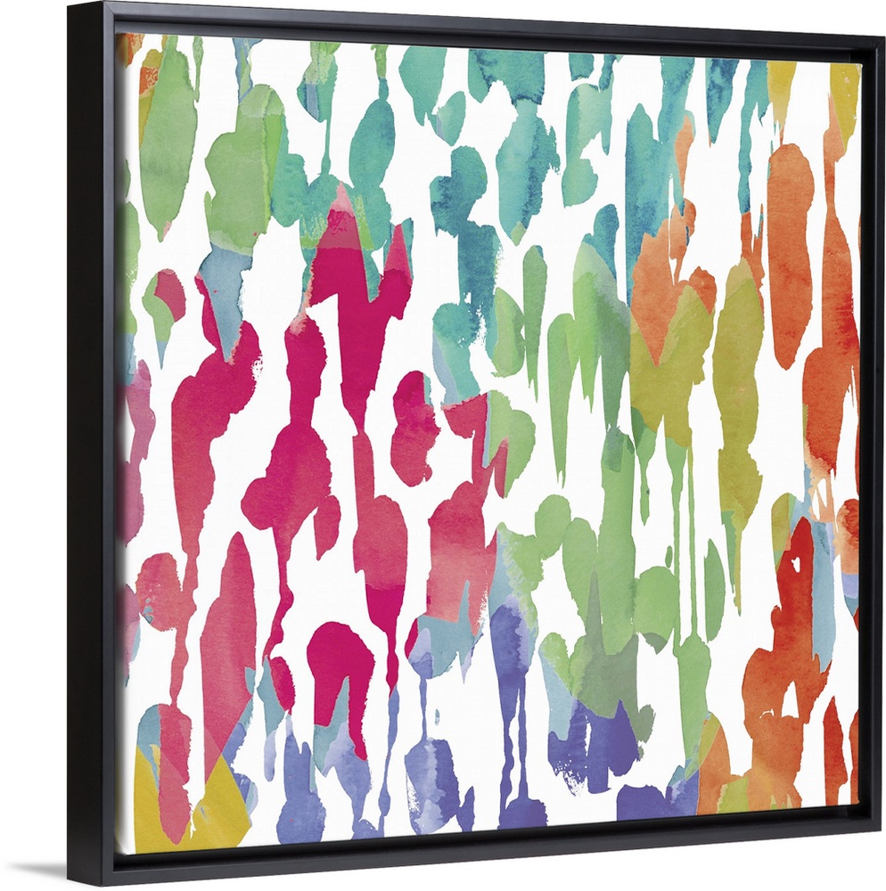 <p>Bright artwork made of varying splatters in rainbow colors.</p>