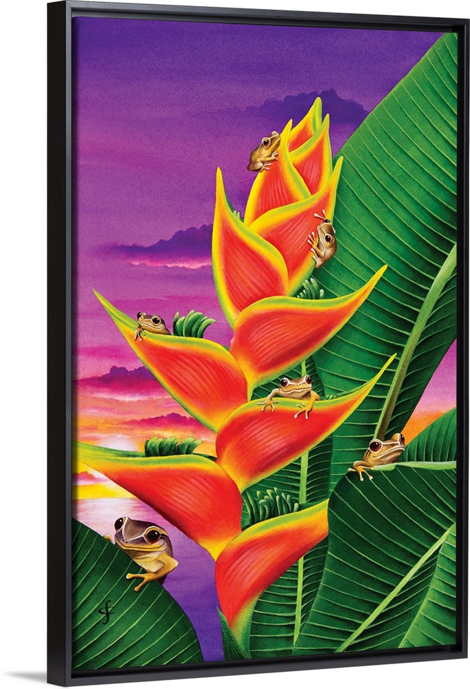 Art Contemporary Art Plants and Flowers Wildlife Florals Tropical Flowers Painting Carolyn Steele Watercolor Wildlife Frog