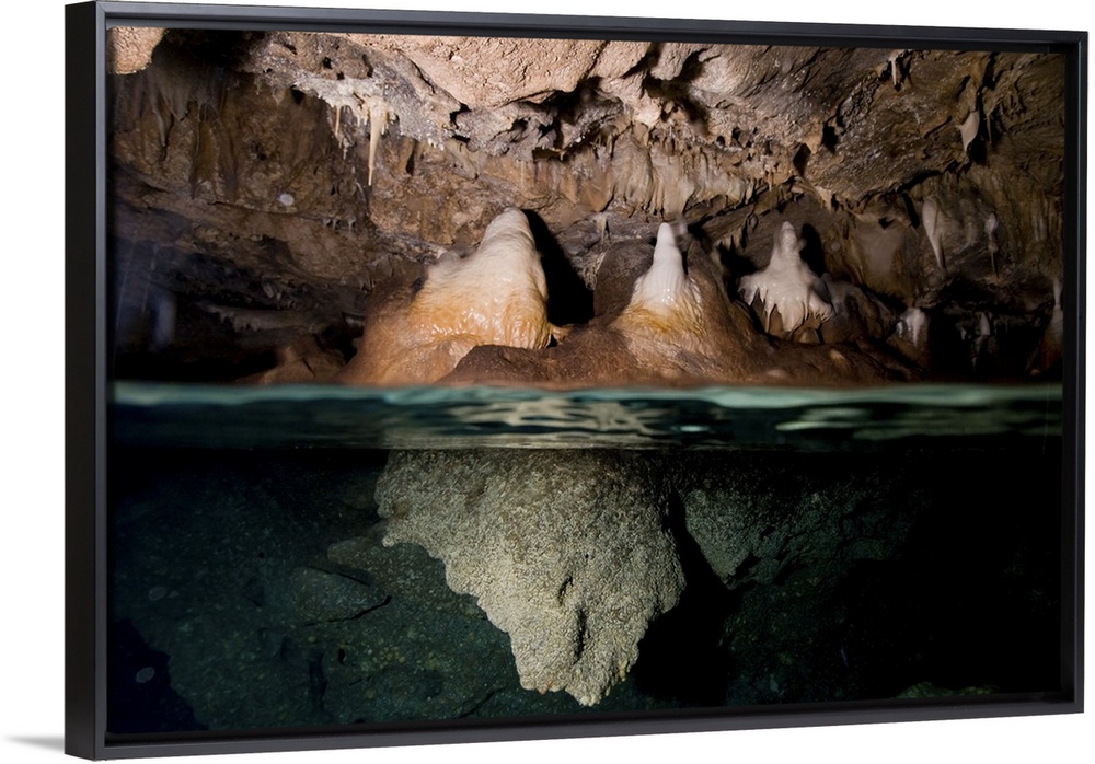 <p>Split shot of stalactites and stalagmites in a cave, Australia.</p>