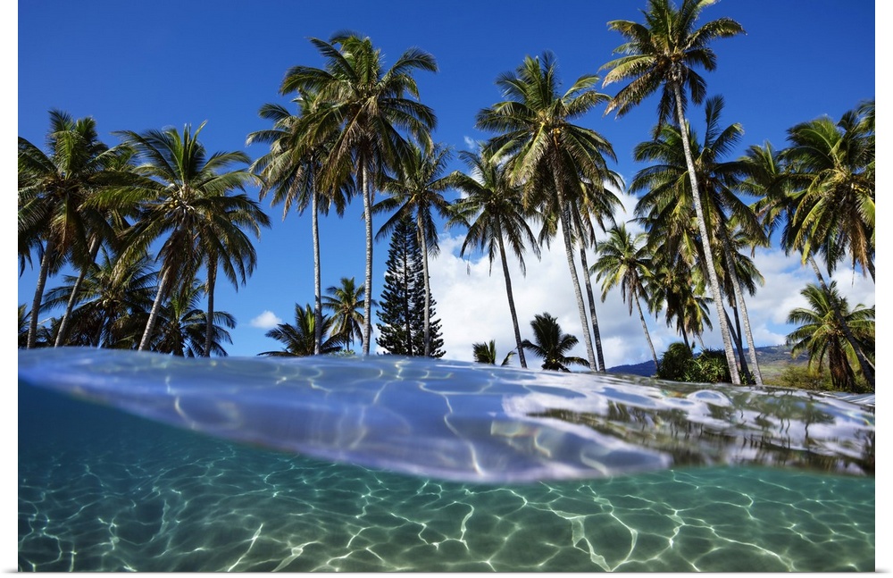 <p>Split view with ocean and palm trees; Lanai, Hawaii, United States of America</p>