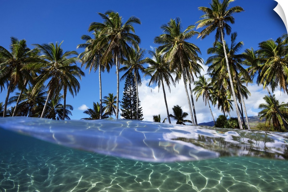 <p>Split view with ocean and palm trees; Lanai, Hawaii, United States of America</p>