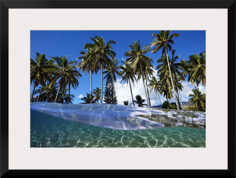 <p>Split view with ocean and palm trees; Lanai, Hawaii, United States of America</p>