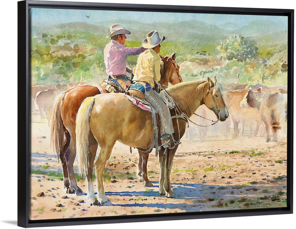 <p>"Splitting the herd" is a watercolor of an actual roundup in California. The history is sketchy but I do remember the artist telling me that this painting, and "Spring Branding" were from an actual round up. It measures 43 1/2" X 33". It is Undated, but the date may be included in the artists numbering system 81-1830. LaVere Hutchings spent much of his time in Idaho before moving to Los Angeles, then on to Jamestown California where he painted until his death in l999. He is a member of the National Watercolor Society, and author of several books, including "Make your watercolors sing" by Northlight..</p>