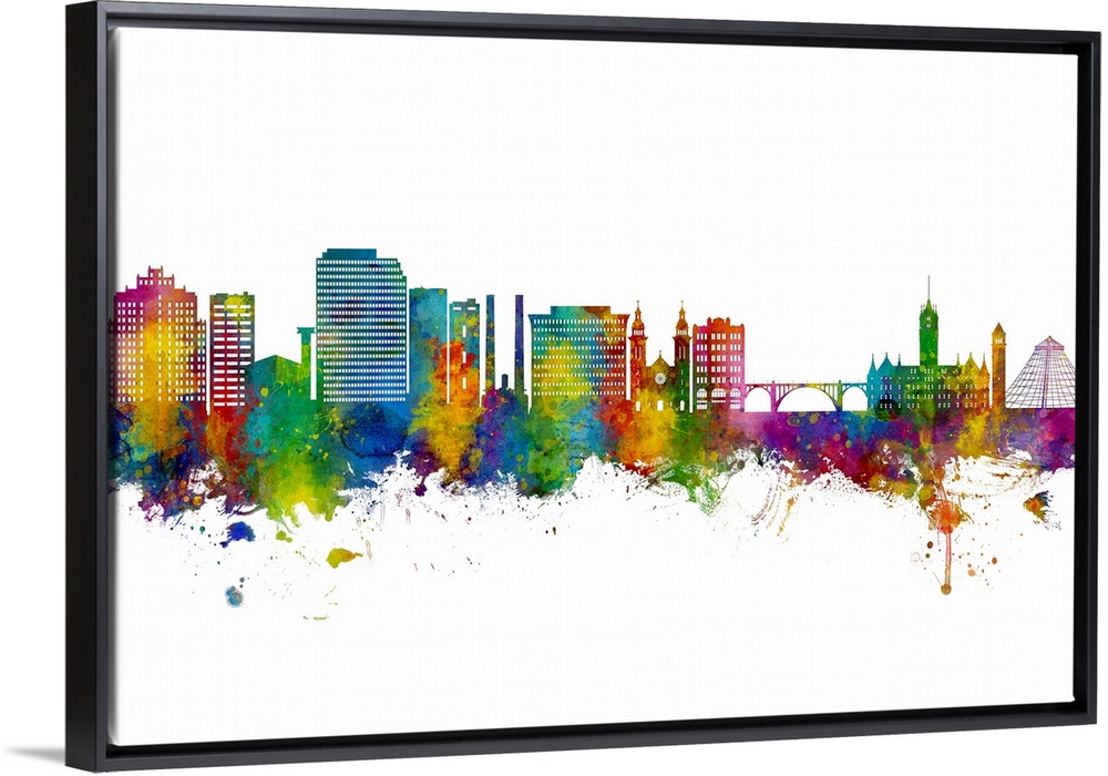 <p>Watercolor art print of the skyline of Spokane, Washington, United States</p>