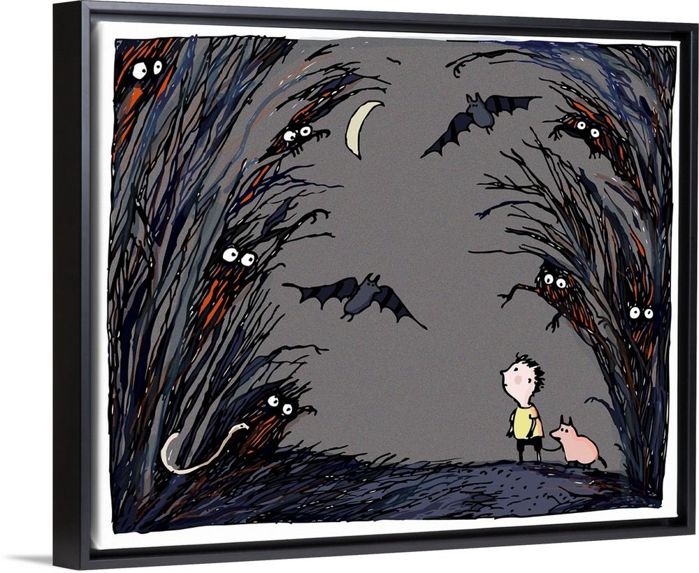 <p>kid, pig, bats, moon, night, spookyhalloween</p>