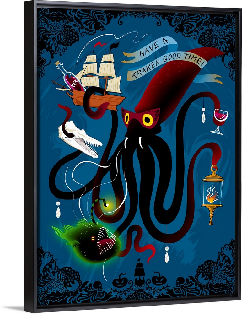 Art Blue Wall Art Decorative Art Graphic Art Holidays Halloween Laura Marr Wildlife Marine Life Octopus and Squid
