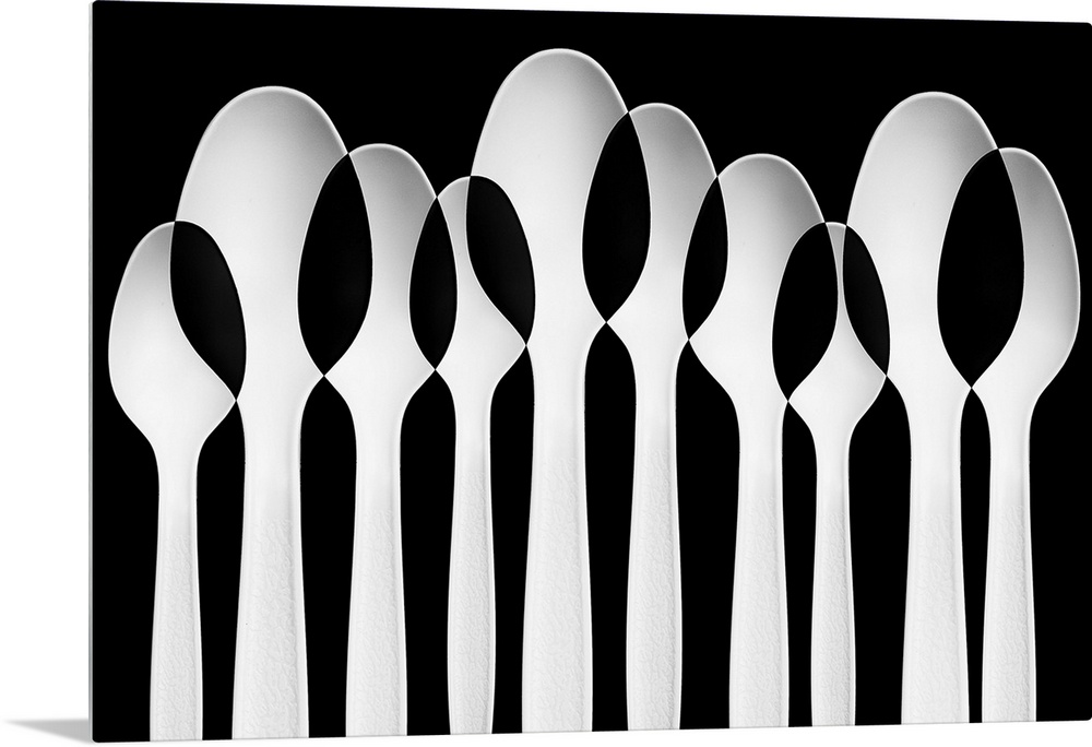 <p>Spoons standing in a row, with negative space where they intersect.</p>