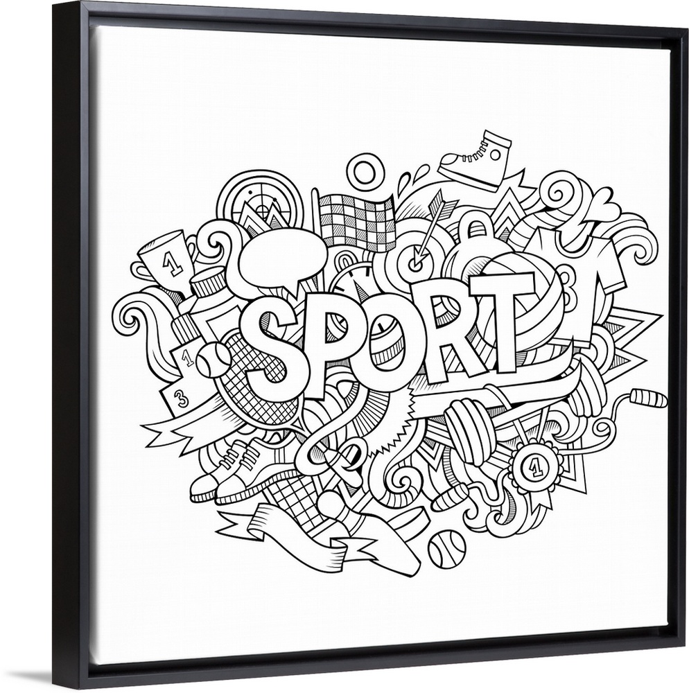 <p>Several pieces of sports equipment such as weights, shoes, rackets, balls, and trophies, surrounding the word "Sport." Perfect for Coloring Canvas.</p>