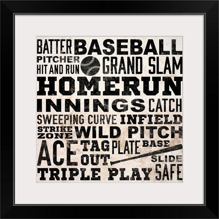 Art Black and White Wall Art Health Club and Home Gym Art Graphic Art SD Graphics Studio Sports Baseball Typography & Calligraphy