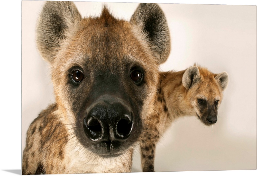 <p>Spotted hyenas, Crocuta crocuta, at the Sunset Zoo in Manhattan, Kansas.</p>