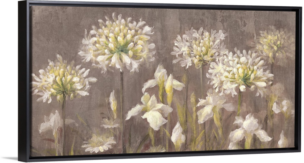 <p>Contemporary painting of blooming white flowers in a garden.</p>
