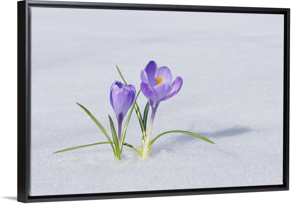 <p>Spring Crocuses in Snow, Franconia, Bavaria, Germany</p>
