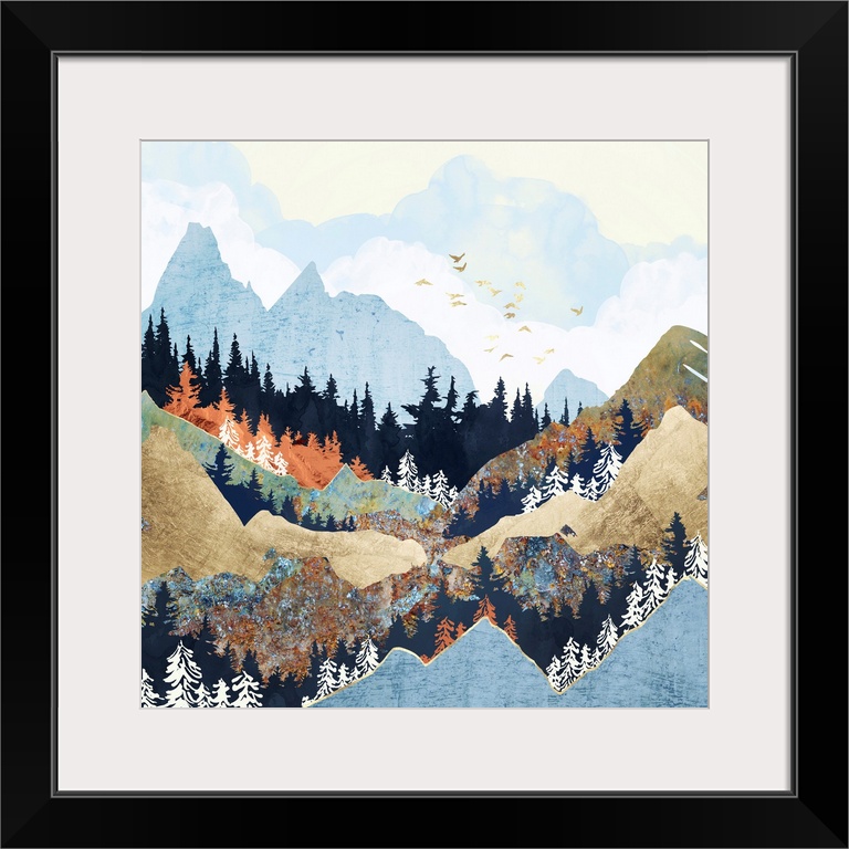 Art Blue Wall Art Contemporary Art Landscapes SpaceFrog Designs Graphic Art Landscapes Mountains Trees Forest