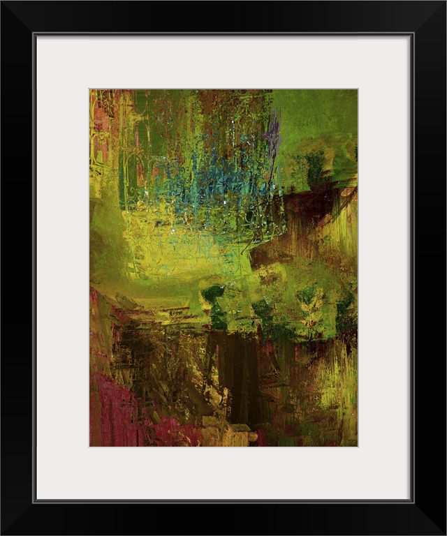 <p>An abstract expressionistic image full of movement and texture in iridescent greens, golds, browns and reds.</p>