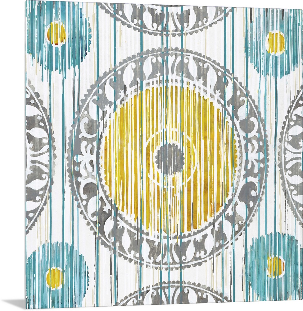 <p>Contemporary painting of the light colored Ikat pattern.</p>