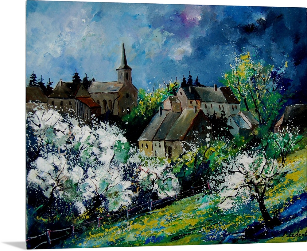 <p>A contemporary painting of a spring day in Fays Famenne, a village in the Belgian.</p>